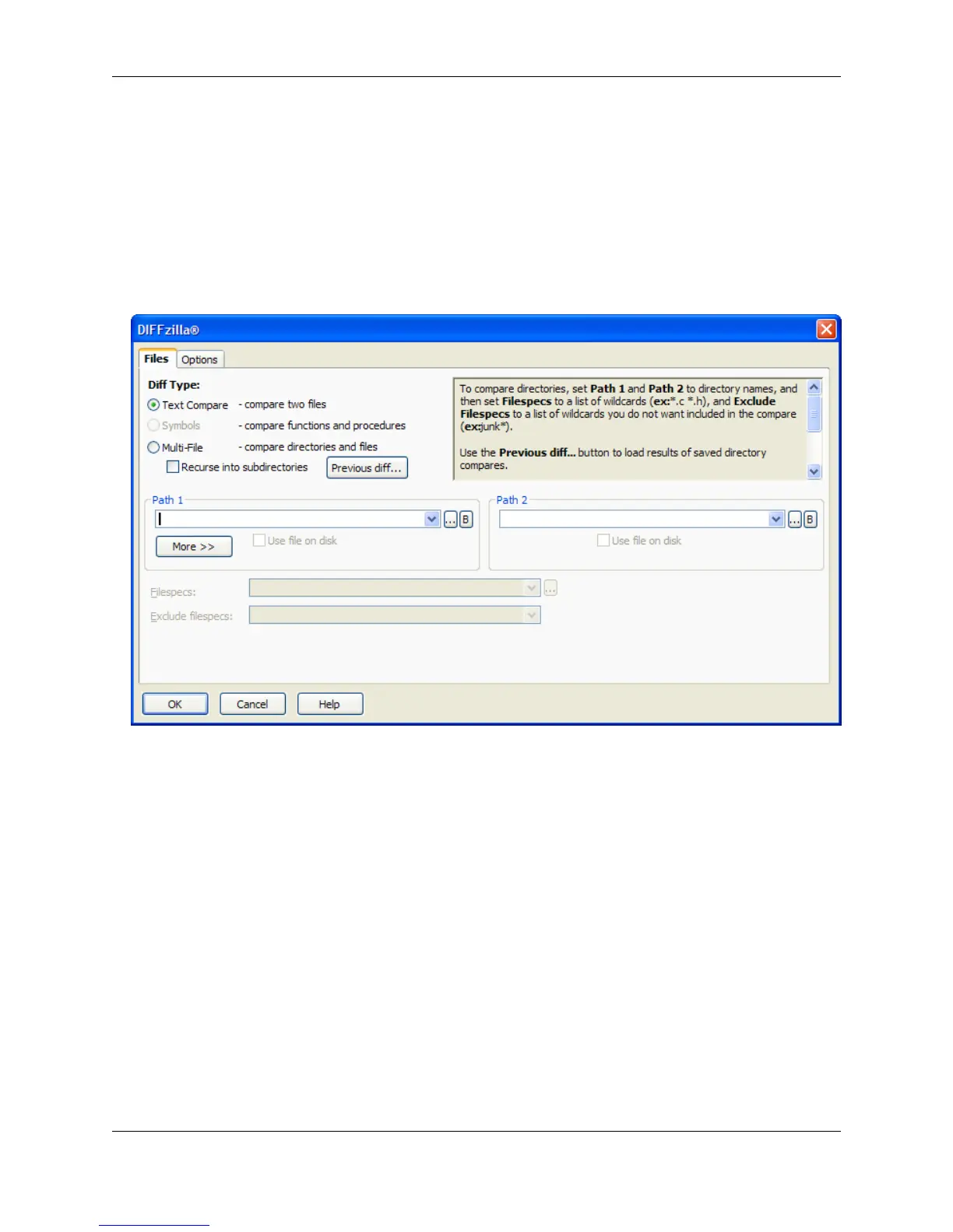 3. Enter the name of the first file to compare in the Path 1 text box. Enter the name of the second file in