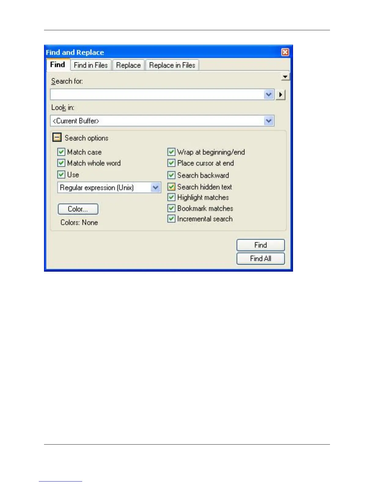 • Search for - Enter the string you want to search for here. You can retrieve previous search strings by