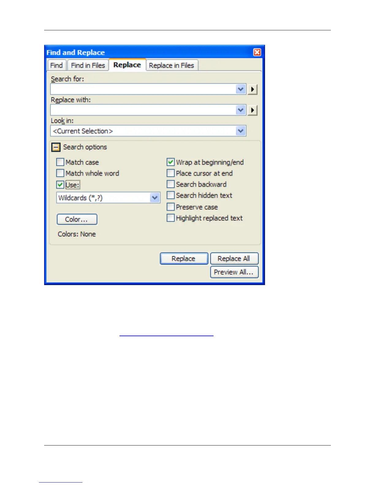 • Preserve case - Select this option to perform a case-sensitive search and replace operation.