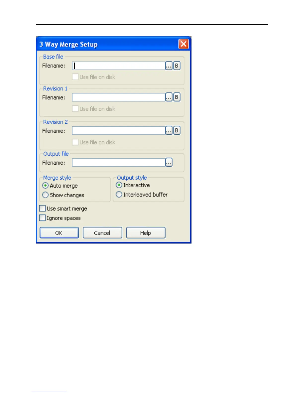 • Revision 1 and 2 - Specifies the file/buffer names of the modified versions of the base file.