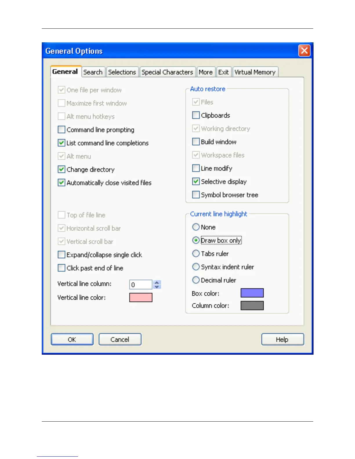 • One file per window - (Not available in SlickEdit Core.) If checked, each file you open will be allocated