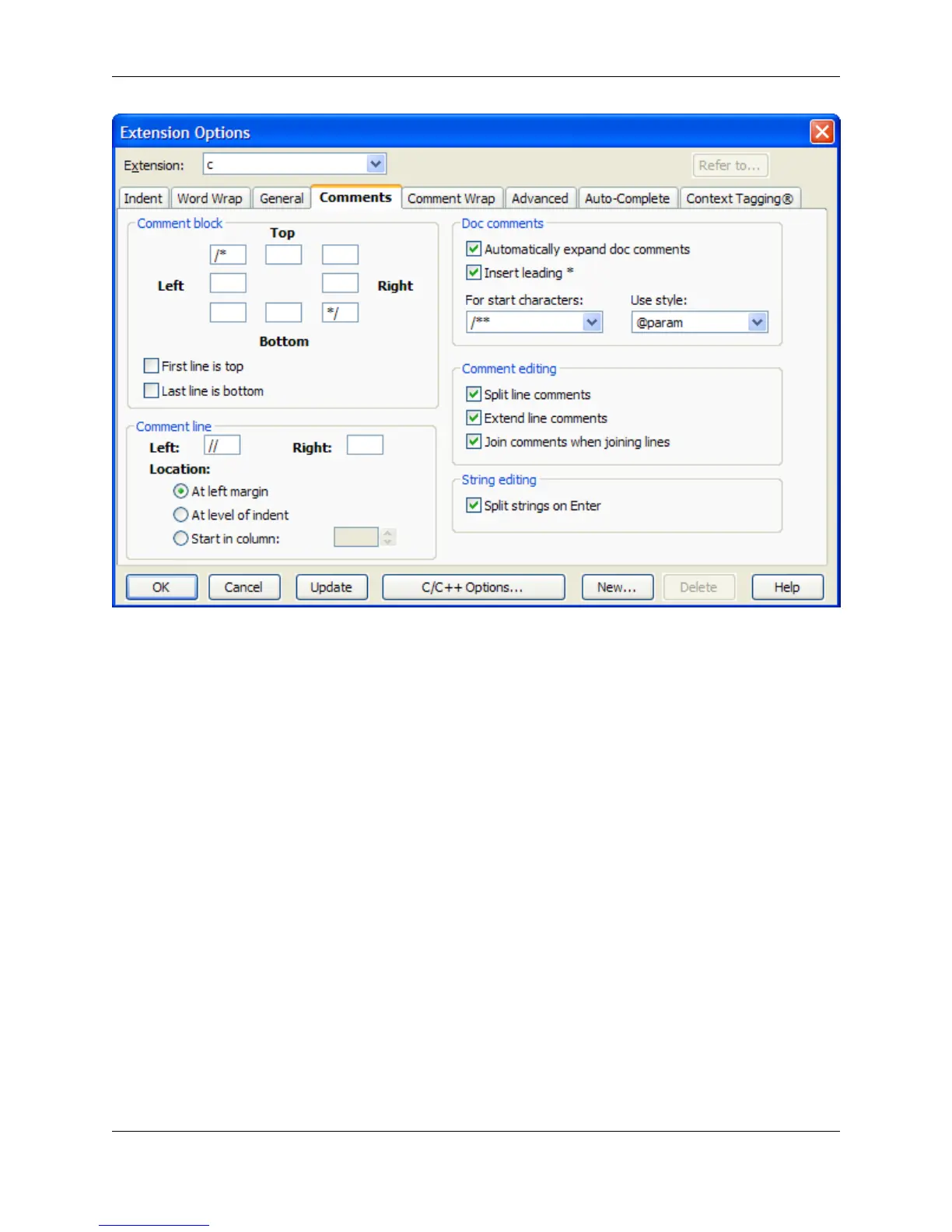 fields with the characters to begin and end a block comment. To draw a box around the comment, fill in