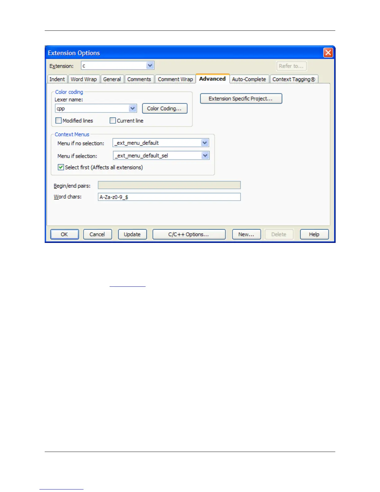• Extension specific project - (Not available in SlickEdit Core.) Click this button to set project properties