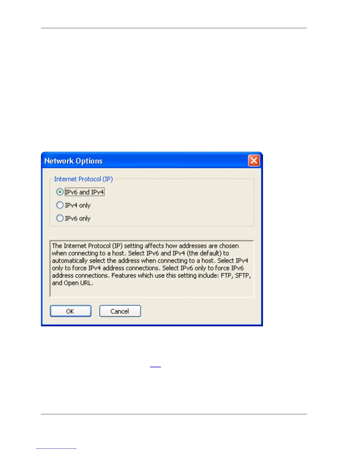 The Internet Protocol (IP) setting affects how addresses are chosen when connecting to a host. Select