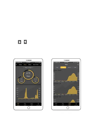 Data section, tap Today, Steps, Sleep or Heartrate on the top