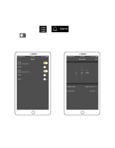 2. Tap to turn the alarm on, and tap Time to edit alarm