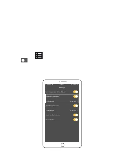 2.Tap to turn the Sedentary reminder on, and choose