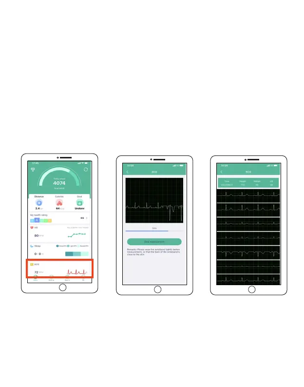 2. Abra la aplicación FitPro, seleccione ECG en la pantalla de inicio, pulse "Start measuring"