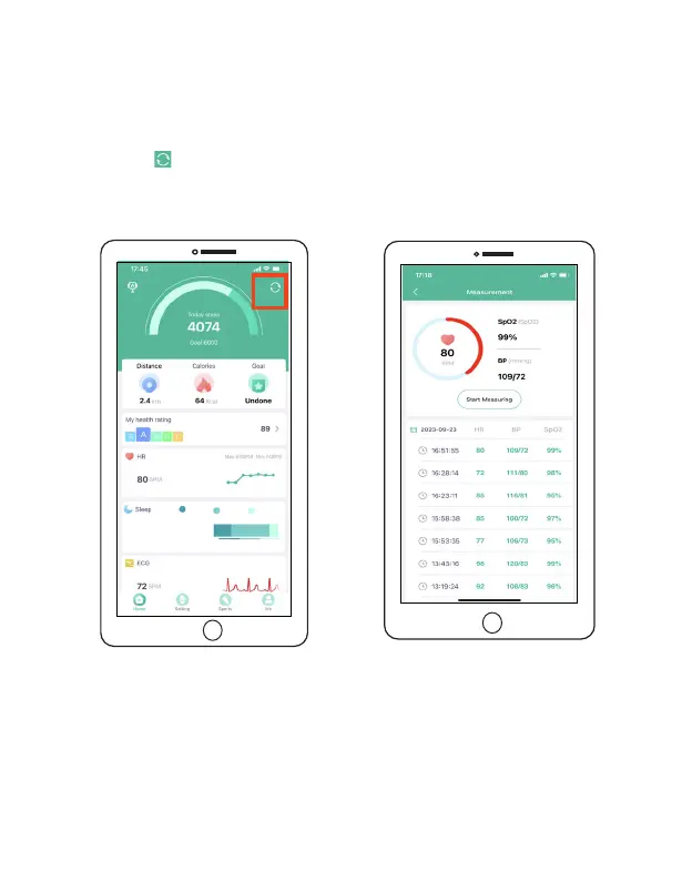 app, toca el icono en la esquina superior derecha para actualizar los datos en tiempo real.