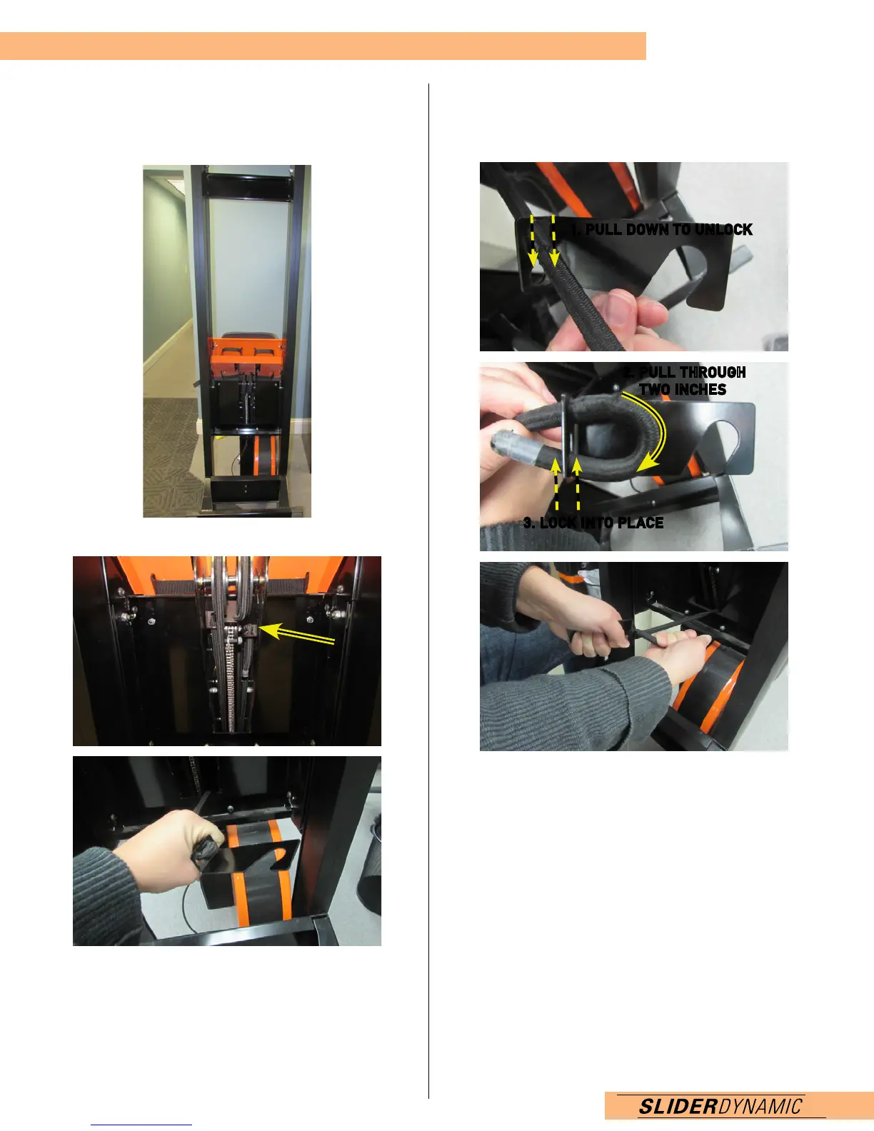 loosen (or ‘unlock’). Pull 2 inches through, then tighten