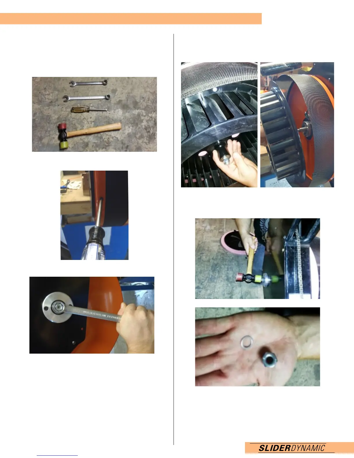 Take the spacer and nut and put back on the shaft.