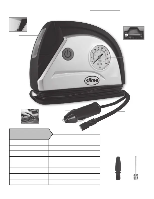 Slime 40050 - Tire Inflator Components and Specifications; Key Product Features and Design; Tire Inflator Technical Specifications