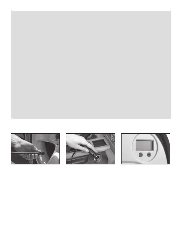 1. NO PONGA EN MARCHA el vehículo cuando el inflador esté funcionando. Puede