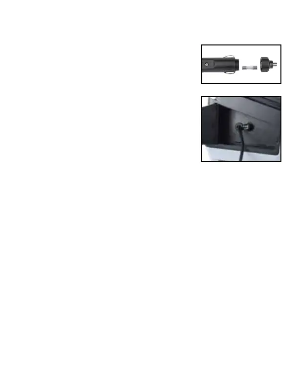 • 12v fuse is located in the plug adaptor: unscrew the tip,