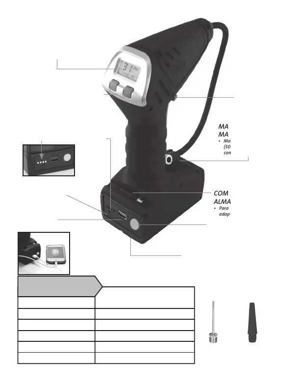 * (0-35 PSI, llanta estándar de coche: 195/65 R15)