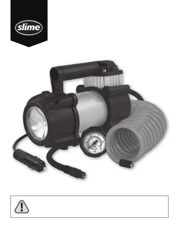 If your Slime Power Tool inflator isn't turning on, there are several things to check: * The fuse in the plug adapter might be blown. Unscrew the tip of the plug adapter, remove the fuse, and inspect it. If needed, replace it with a fuse of the same size and amperage. * Check your vehicle's power outlet fuse; it should be at least 15 amps. * Inspect the receptacle and plug terminals for dirt, especially tobacco. Use a non-conductive probe to carefully remove any debris. * Ensure the power plug is firmly pushed into the receptacle, and try twisting it back and forth.