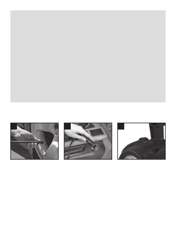 1. NE PAS faire fonctionner le gonfleur quand le moteur tourne. ÉTEINDRE d’abord