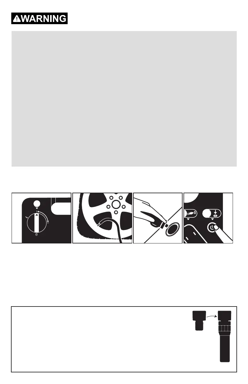 NOTICE: ENGINE SHOULD BE RUNNING WHILE USING THIS INFLATOR