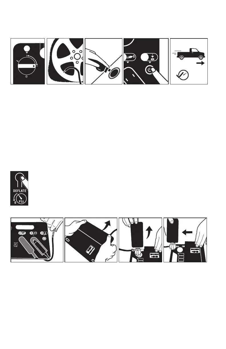 NOTE: Engine should be running while using this inflator. See Warning Section for