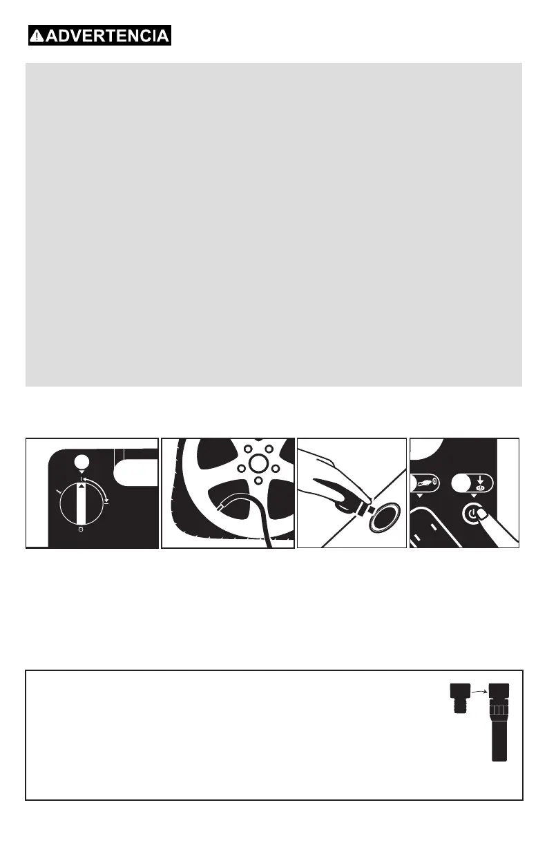 NOTA: El motor debe estar funcionando mientras usa este inflador. Consulte la sección de