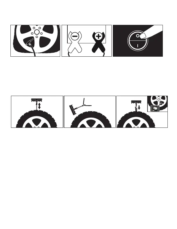 3. Presione el interruptor para encender el inflador. Infle la llanta a la presión recomendada por