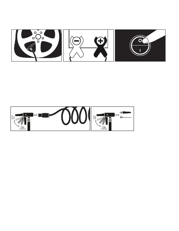 1. Attach quick connect air hose onto tire's valve stem and pull lever up to lock.