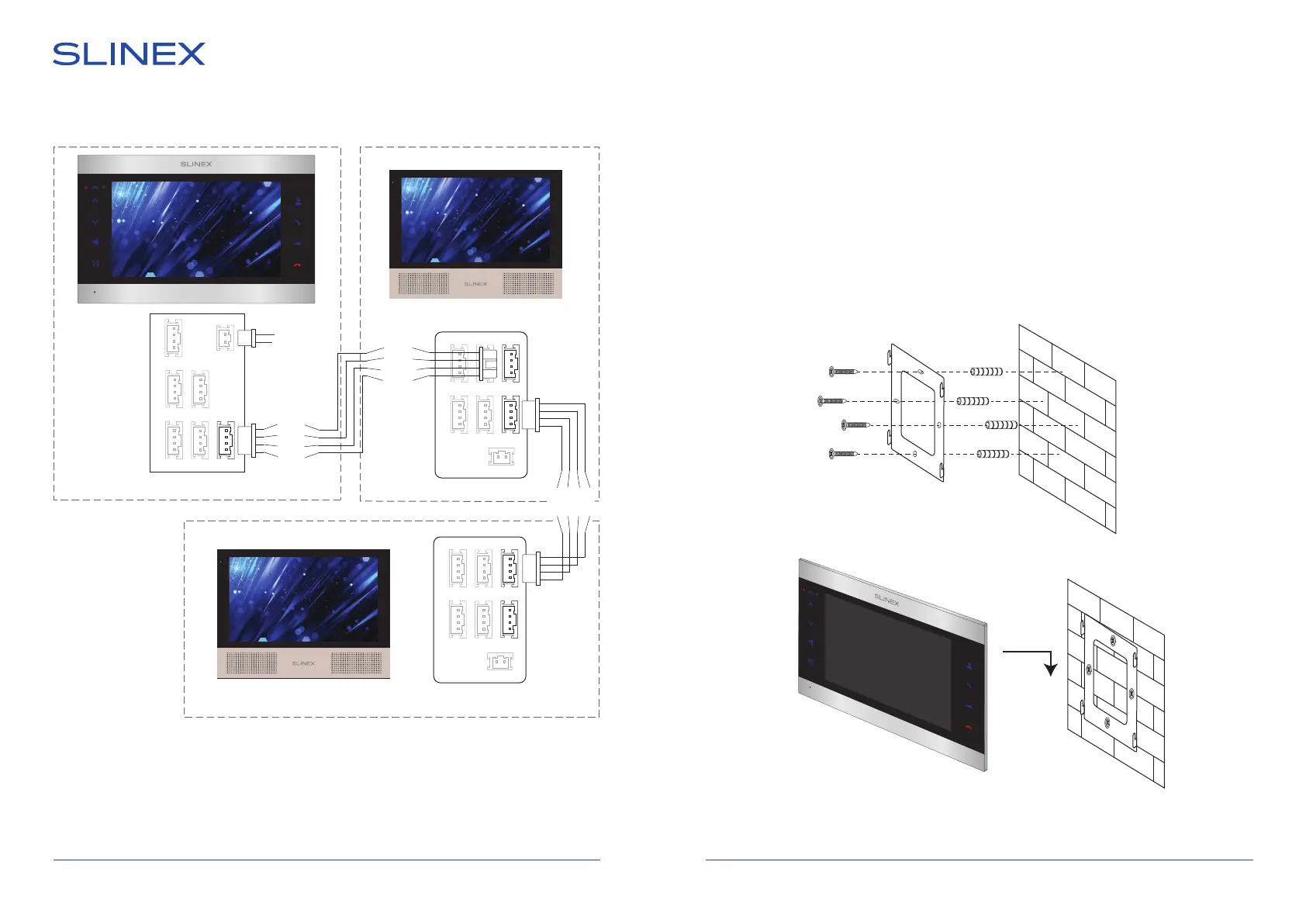 5) Connect all communication wires and x the monitor on the surface mount bracket.