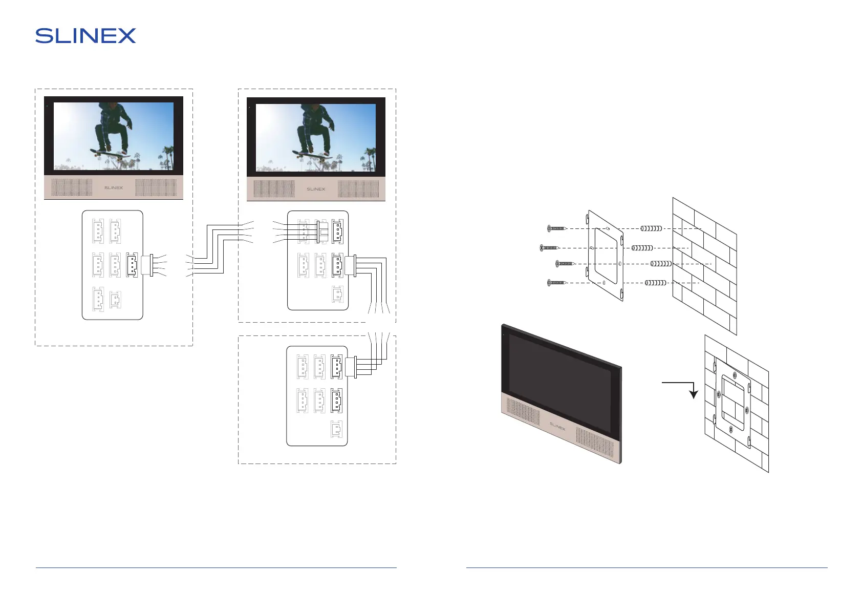 5) Connect all communication wires and x the monitor on the surface mount bracket.