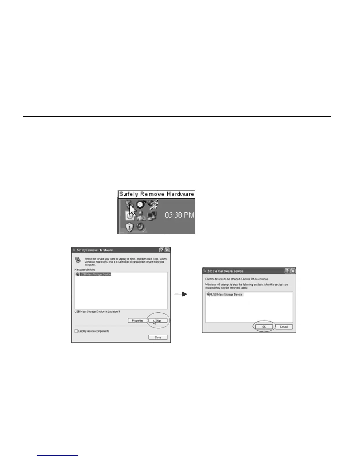 B.Select “USB Mass Storage device”,and click the “STOP”,Stop using hardware appeared on screen as bellow.