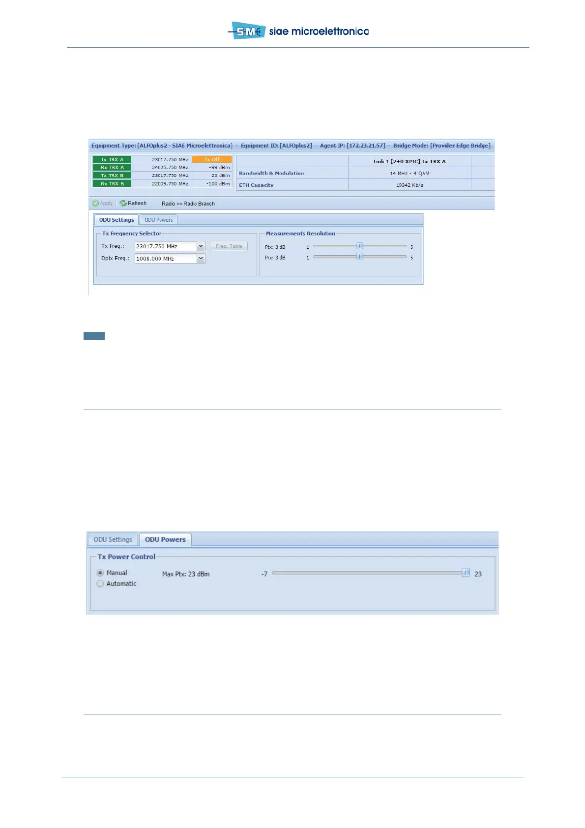 Note: On remote IDU Tx and Rx frequencies are the opposite respect the local.