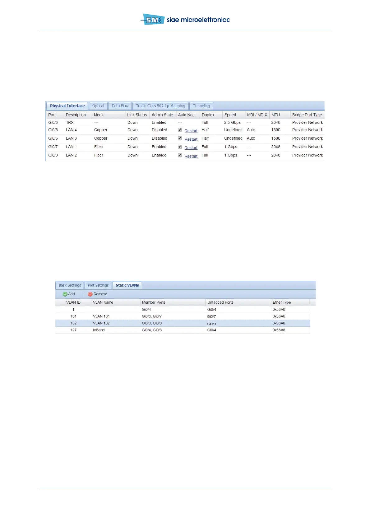 • set VLAN ID, VLAN name, Member Ports, Untagged Ports (among the previous) and Ether Type
