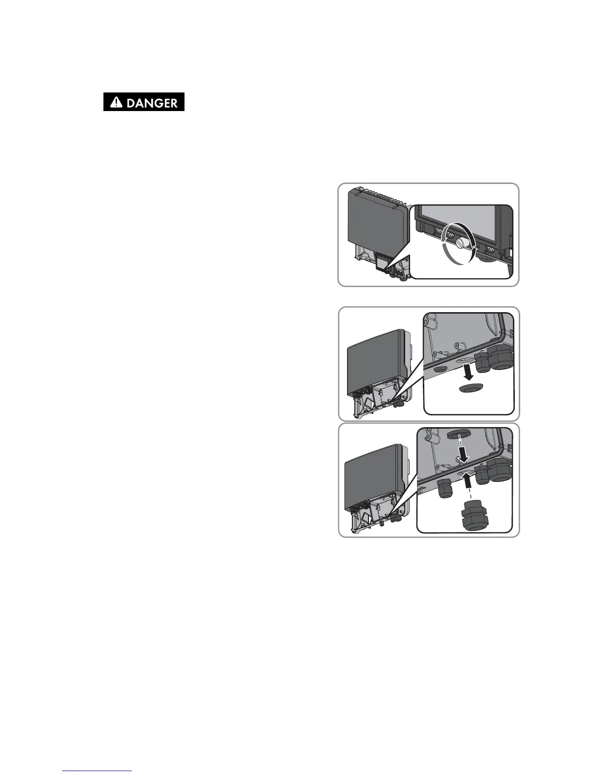 • Disconnect the inverter from all voltage sources on the AC and DC sides and open it (see
