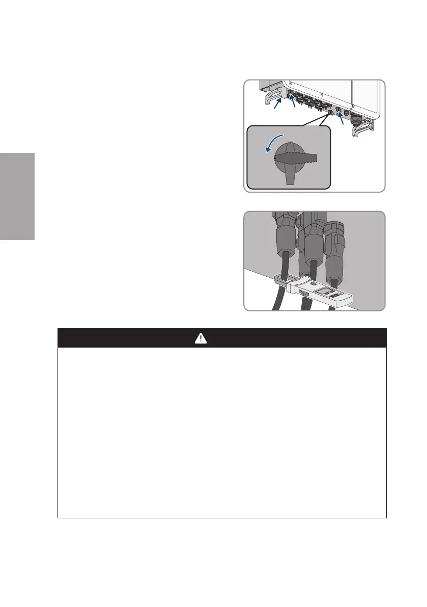 liggen. Het aanraken van spanningvoerende DC-aders of DC-connectorcontacten leidt tot