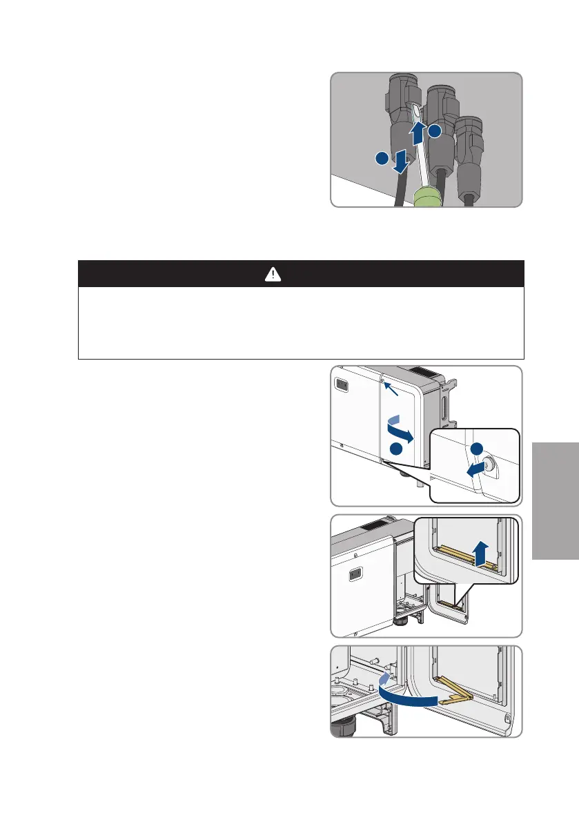 7. Deblocaţi şi scoateţi conectorii DC. Pentru aceasta