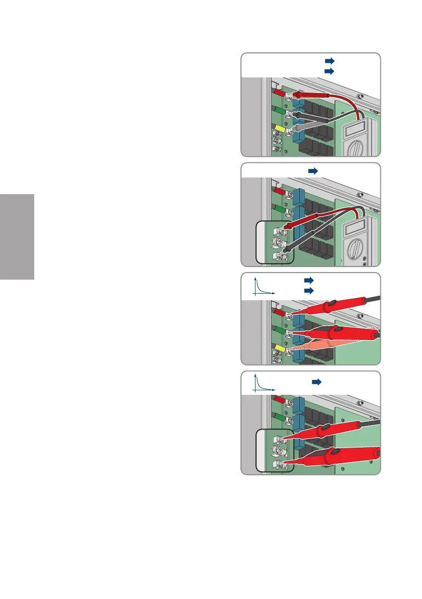 4. Ujistěte se, že napětí na kondenzátorech mezi T