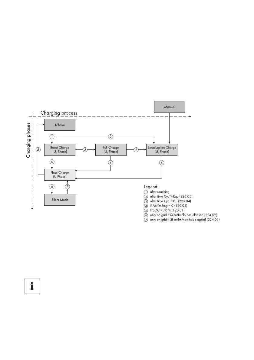 which are described in detail in sections 13.4.1”Boost Charge” (page96) to 13.4.3”Equalization