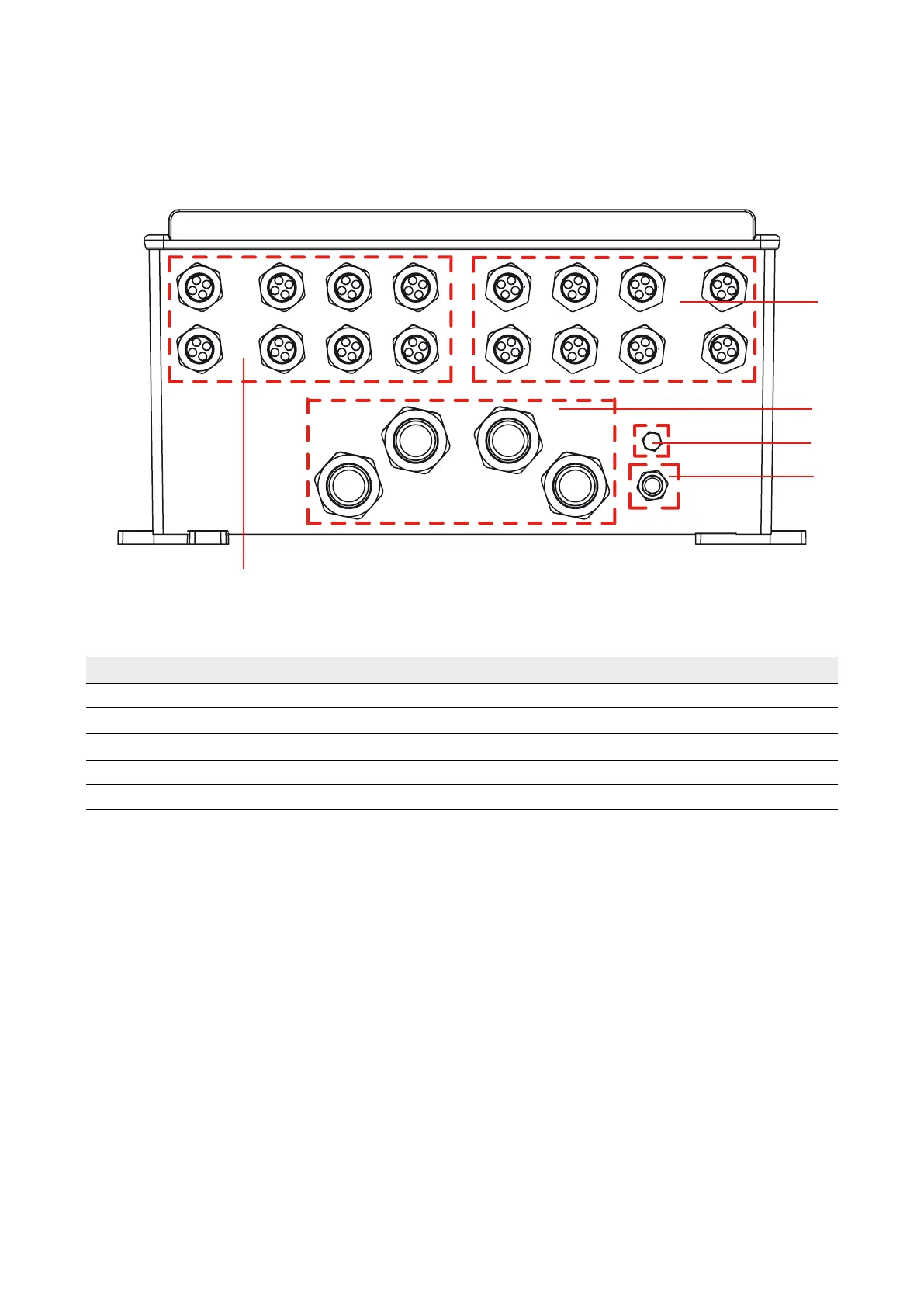 Abbildung 12: Ansicht der Combiner Box mit Kabelverschraubungen von unten (Beispiel)