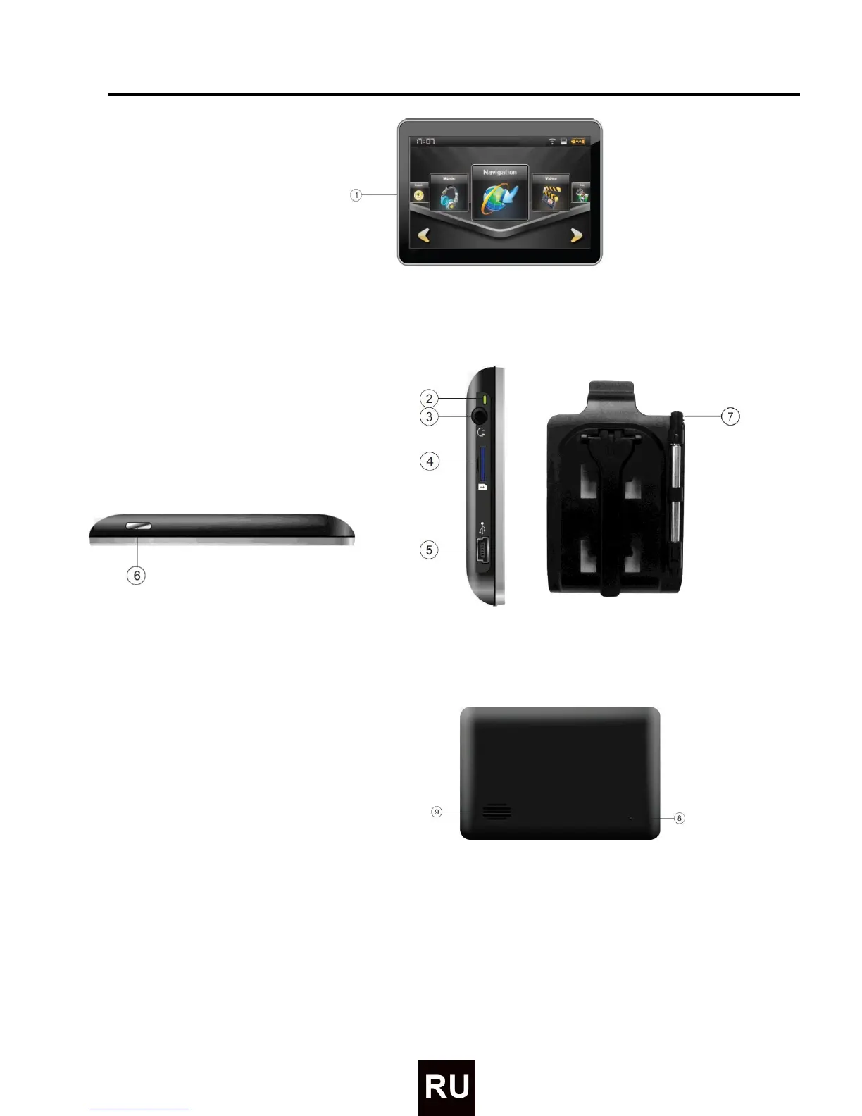 Smailo HD 4.3 - Части Устройства; Вид Сзади; Вид Сверху