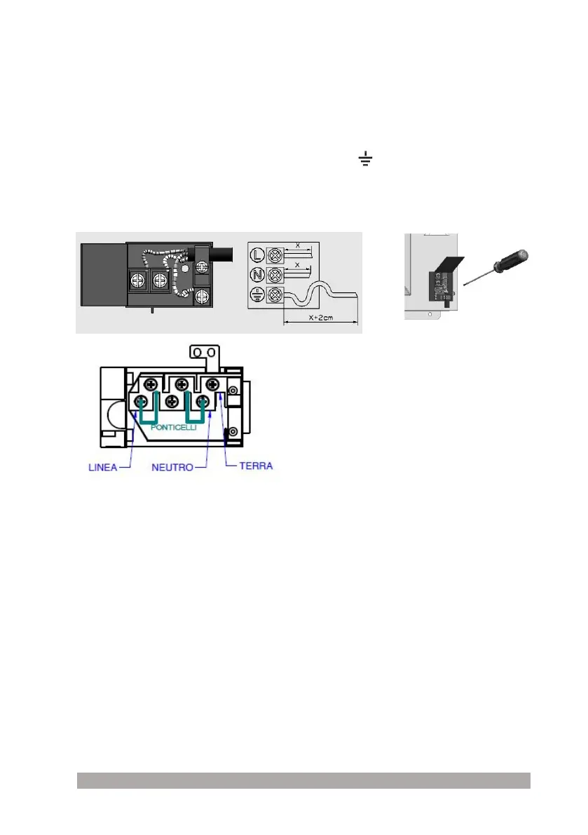 morsetto N il cavo del neutro e al morsetto di terra il cavo giallo/verde. Il cavo