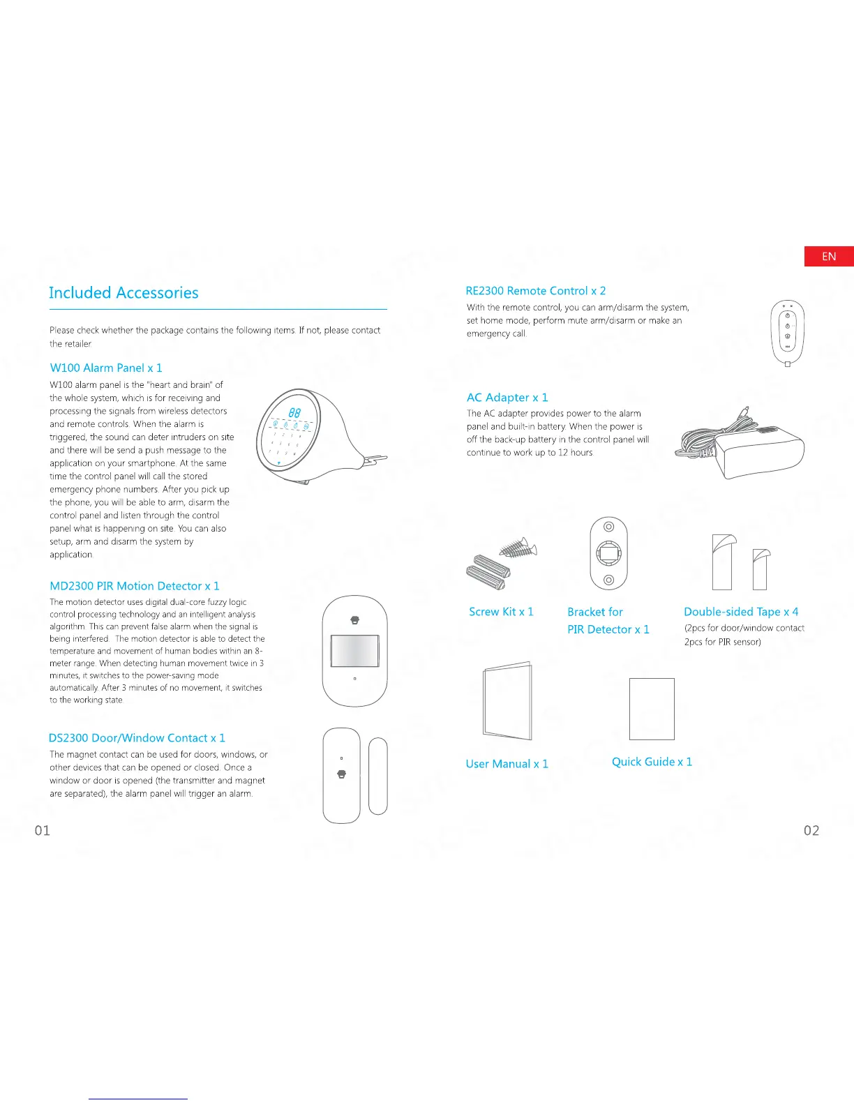 Smanos W100 - Package Contents and Accessories; Core Alarm System Components; Essential Detection Sensors; Remote Control and Power Supply