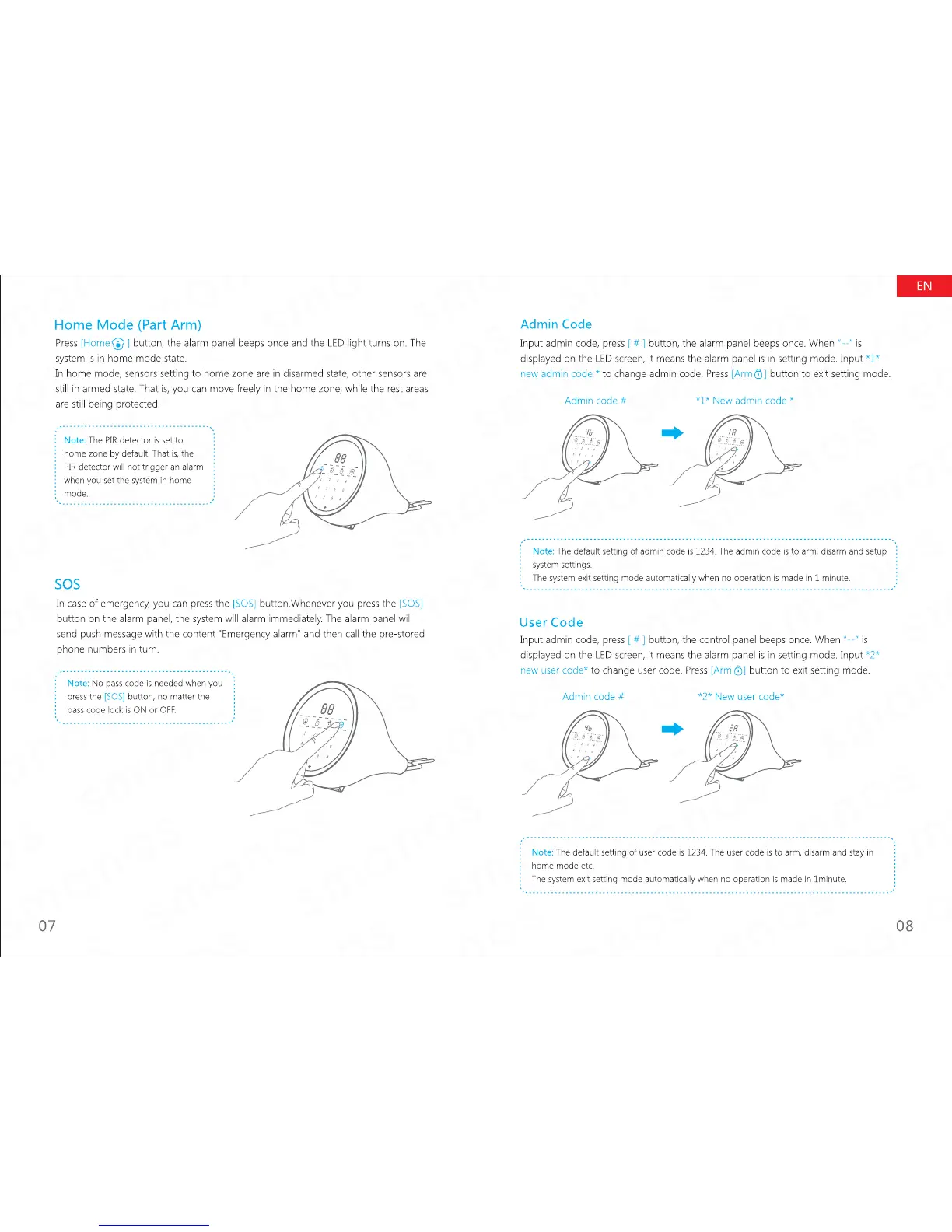 Smanos W100 - Advanced Alarm Panel Operations; Using Home Mode for Partial Arming; Emergency SOS Button Functionality; Managing Admin Access Codes
