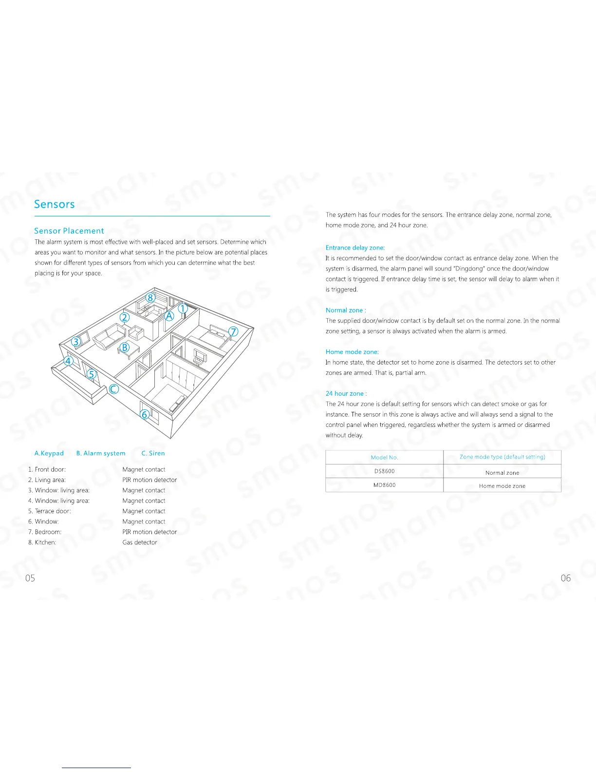 Smanos X330 - Sensors and Placement; Sensor Placement Guidelines; Sensor Zone Mode Descriptions