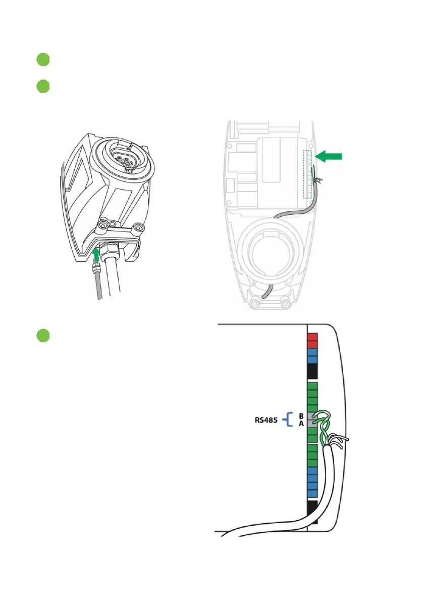 Route the network cable into the charging station along the same route as the power
