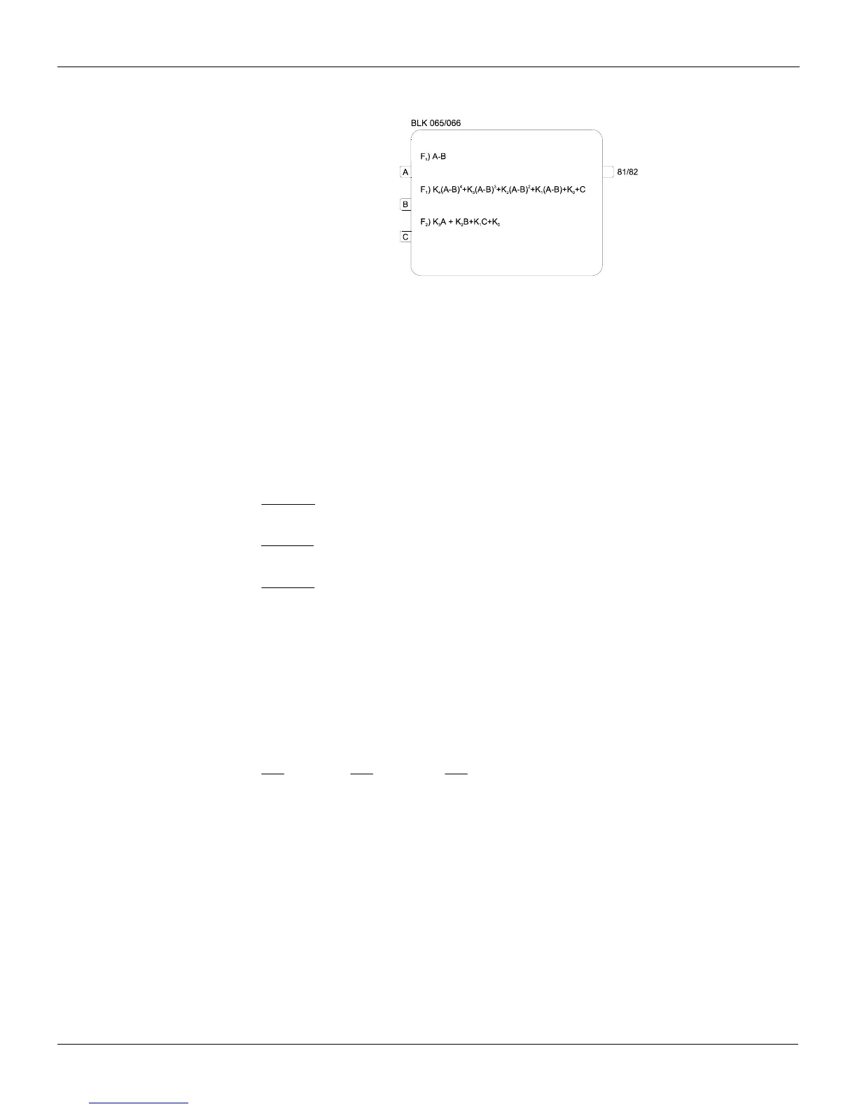 This block executes mathematical operations established by the functions 0, 1 or 2, as shown in the