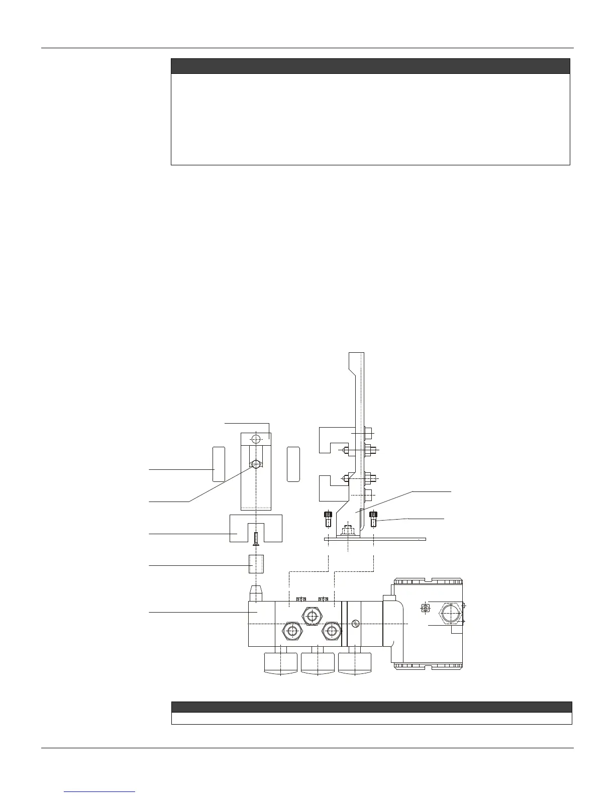 positioner on the bracket by fastening the four screws in the holes of the pressure gauges opposite