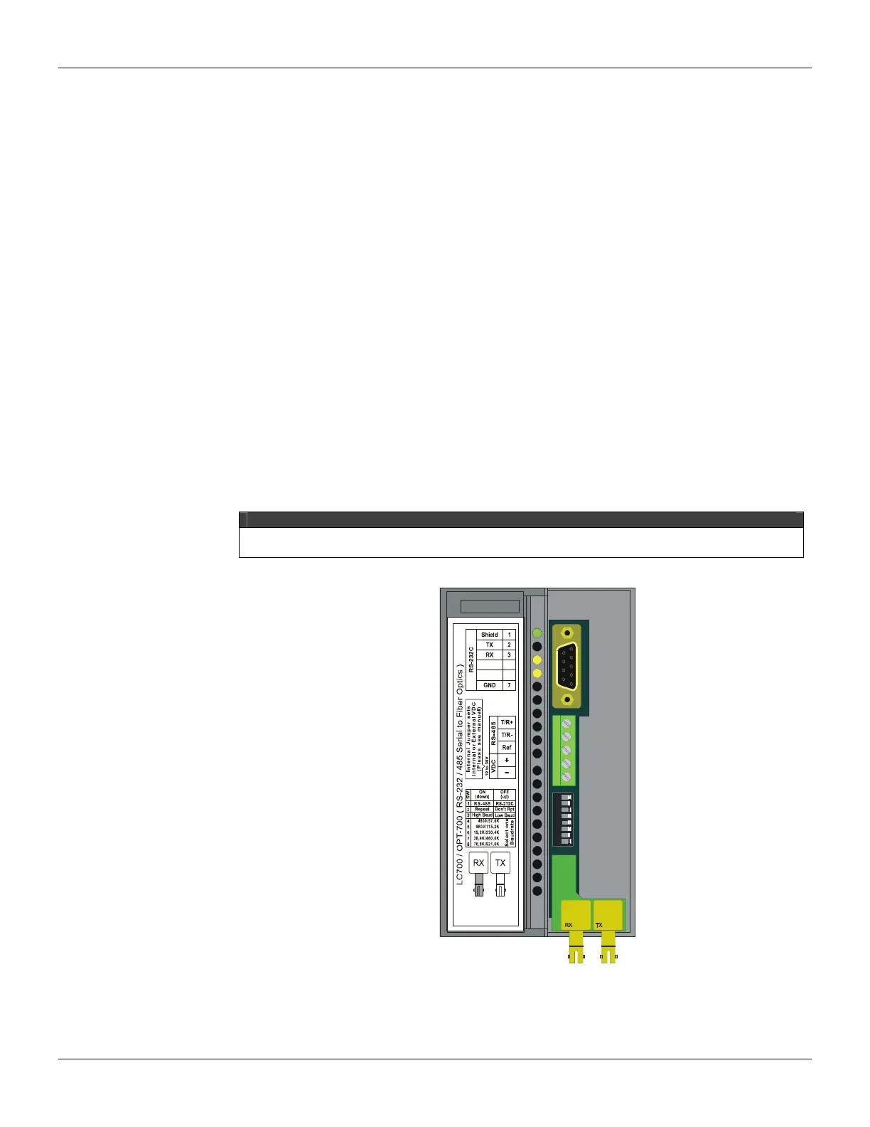 The Figure below shows the OPT-700 Module with the front cover opened. From top to bottom we