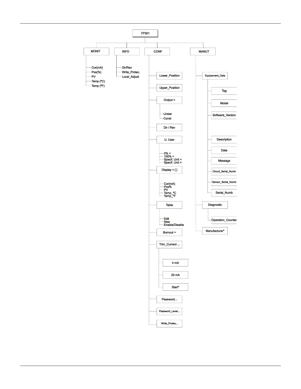 Figure 3.4 TP301 programming tree for the portable configurator based on PalmOS