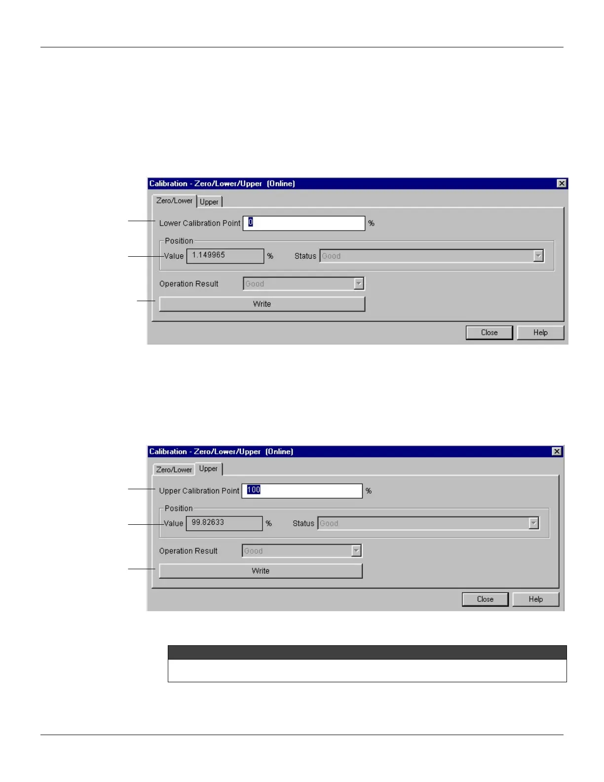 For each value written a calibration is performed at the desired point. This value must be inside of