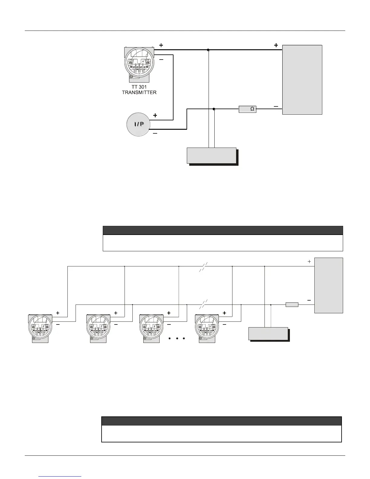 Connection of the TT301 in multidrop configuration should be done as in Figure 1.6. Note that a