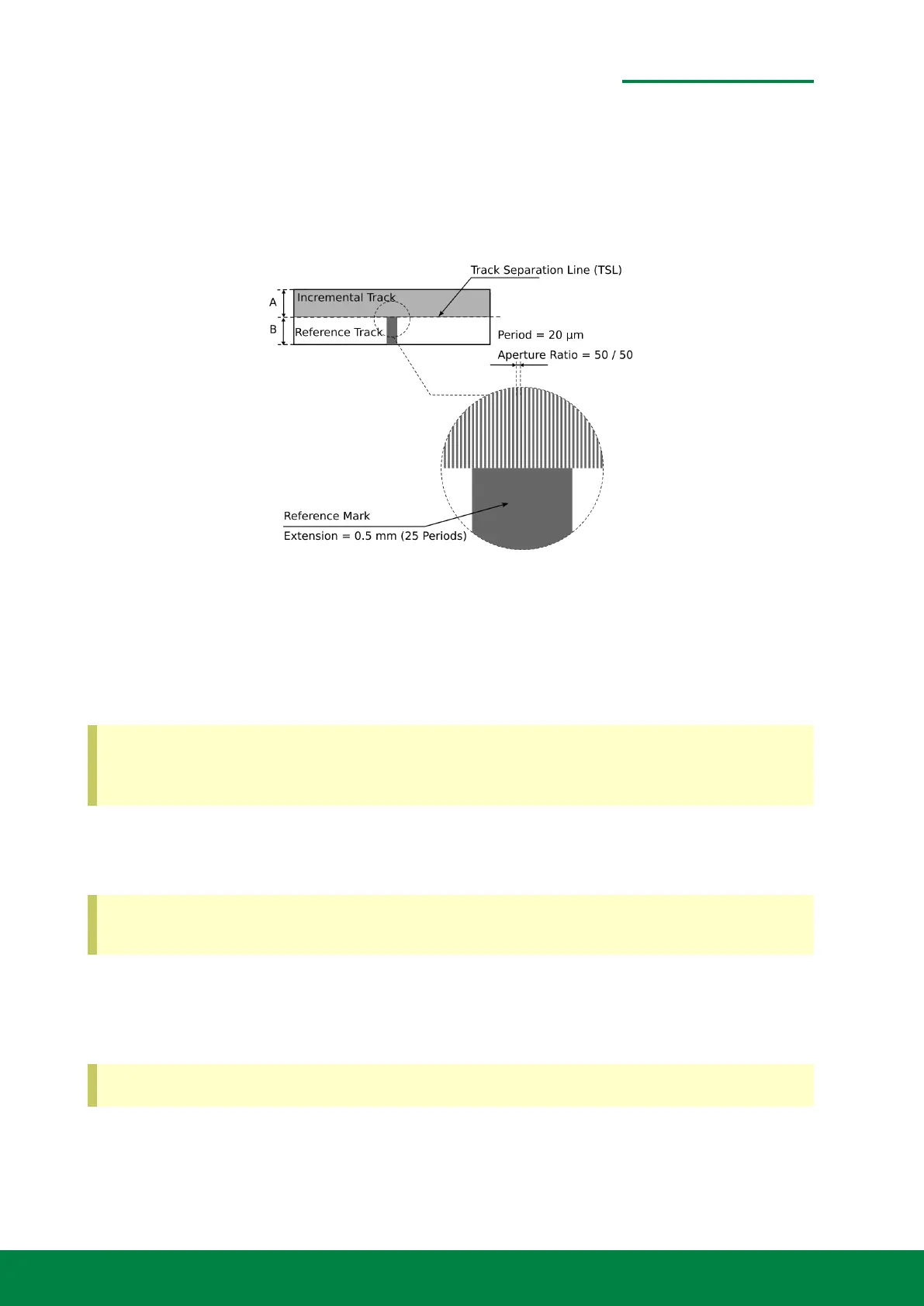 A typical scale comprises two tracks. An incremental track A and a reference track B. The width of